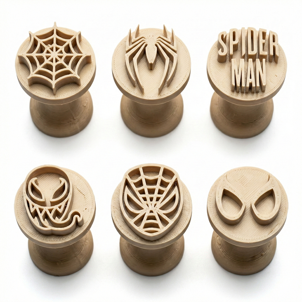 Com designs icônicos e carimbos em alto-relevo, você consegue marcar símbolos clássicos (como a máscara do Aranha, a teia, a aranha símbolo e olhos expressivos) com total precisão.